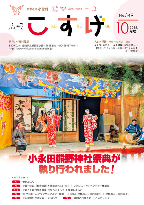 小菅村役場職員配置/定住環境整備金貸付制度対象者拡大について/5月の行事予定/ごみカレンダー