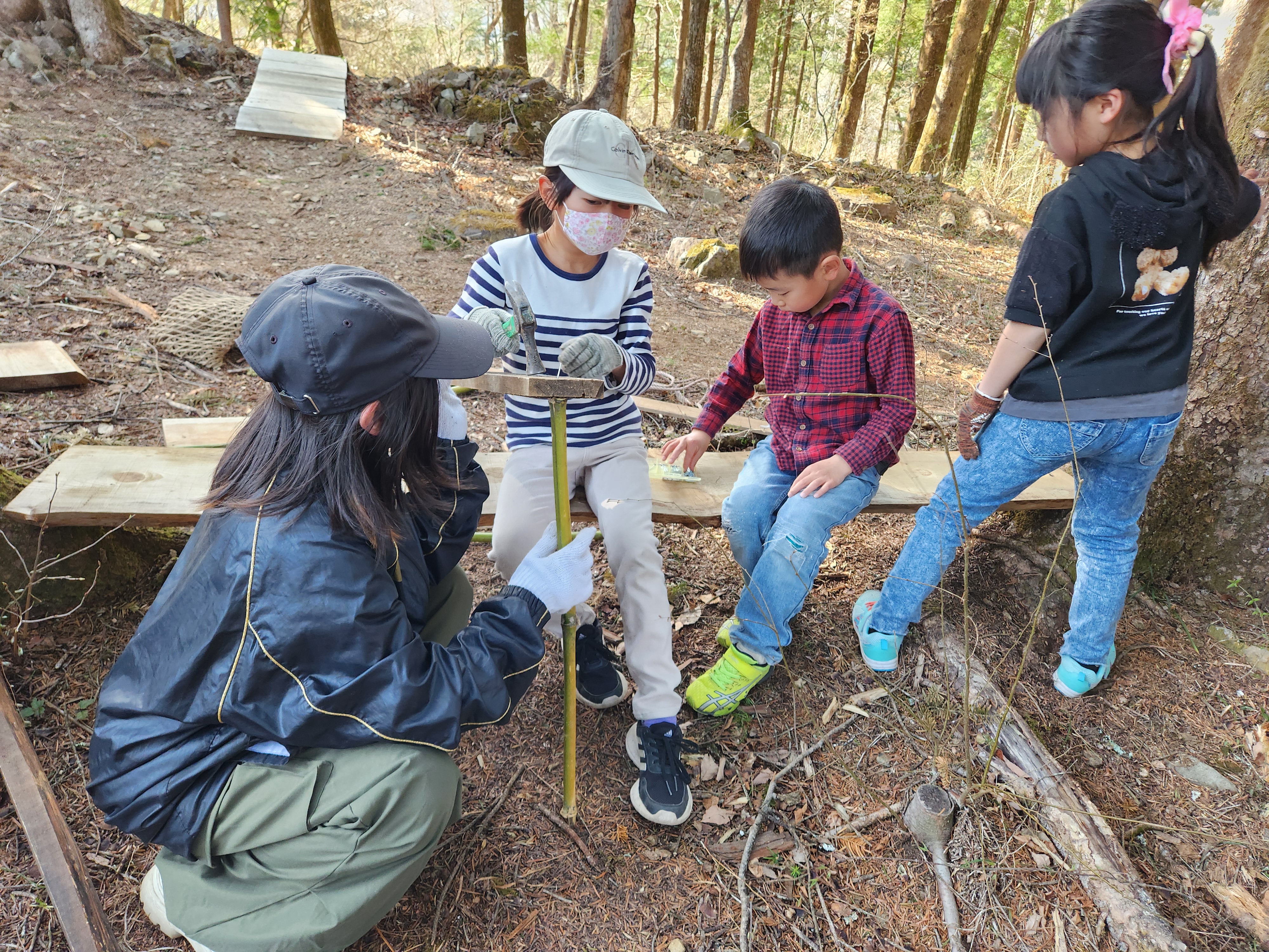 月に一度の「お楽しみ会」での工作・調理活動等に加え、時には村の森林へ飛び出し、五感を使った体験活動を行います。